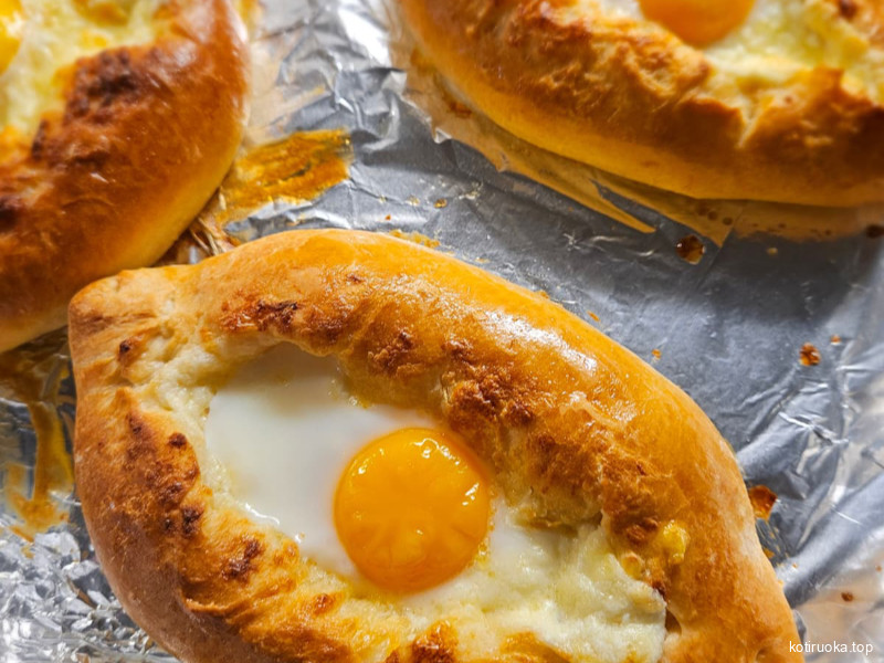 Aitoja adžarilaisia hatsapureja klassisen reseptin mukaan, täytteenä mahdollisimman aitoa täytettä.